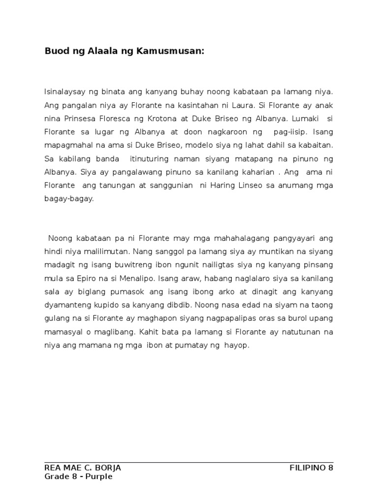 11052019 Retrieved 11 March Pag-aayos ng mga upuan at pagpupulot ng kalat c. Samantalang nasa palasyo si Florante ay nakilala at naakit siya sa kagandahan ni Laura anak ng Hari at hindi tumugot hanggat hindi niya naipagtapat ang kanyang.