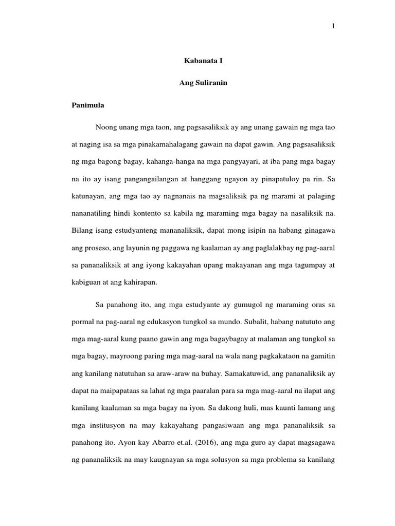 KABANATA IV PRESENTASYON AT INTERPRETASYON NG MGA DATOS Sa kabanatang ito ay ipinapakita ang mga datos na nakalap mula sa mga mag- aaral ng Baitang-11 seksyon ng General Acadamic Strand GAS paaralan ng Magdalena Integrated National High School sa taong 2016 - 2017 Talahanayan 1Mga Paraan ng paghahanda sa pananaliksik ng mga mag- aaral sa General. 8052020 Ang pananaliksik ay maaaring maging daan sa paglago ng mananaliksik sa kanyang larangan pagkilala mula sa kaniyang mga kasamahan at ng nakataas at ng nakatataas paglalakbay o damdamin ng personal na tagumpay Fonollera 1993 Ayon kay Linger 1986 sa Fonollera 1993 ang pananaliksik ay isang sistematiko kontrolado at kritikal na imbestigasyon ng mga natural na penomenang ginagabayan ng.