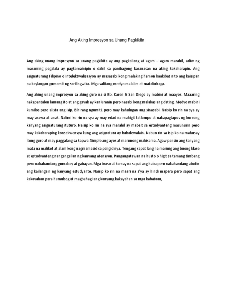 Ang Aking Impresyon Sa Unang Pagkikita