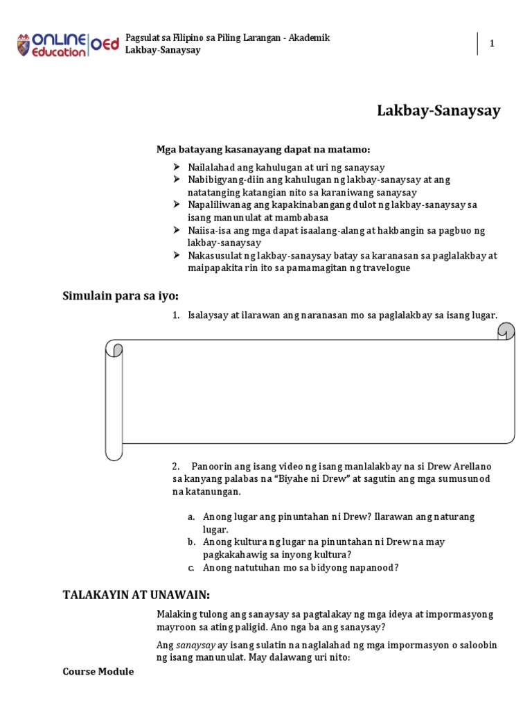 1 on a question. Sundin ang mga paraan sa pagsulat nito. Lakipan mo ito ng iyong mga larawang kuha sa paglalakbay.