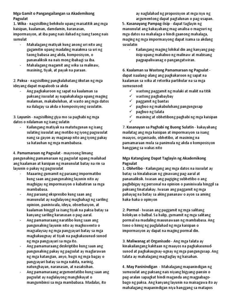 Mga Gamit O Pangangailangan Sa Akademikong Pagsulat