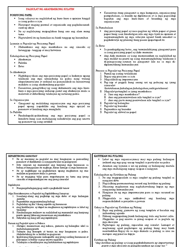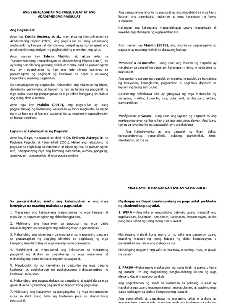 DESKRIPSYON NG KURSO Pagsulat ng ibat ibang anyo ng sulating lilinang sa mga kakayahang magpahayag tungo sa mabisa mapanuri at masinop na pagsusulat sa piniling larangan. 7082017 Dahil ito ay gawain na nagpapalawak ng isipan at karanasan ng isang tao. Ito ay isang uri ng lagom na karaniwang gingamit sa pagsulat ng akademikong papel tulad ng tesis papel na siyentipiko at teknikal lektyur at mga report.