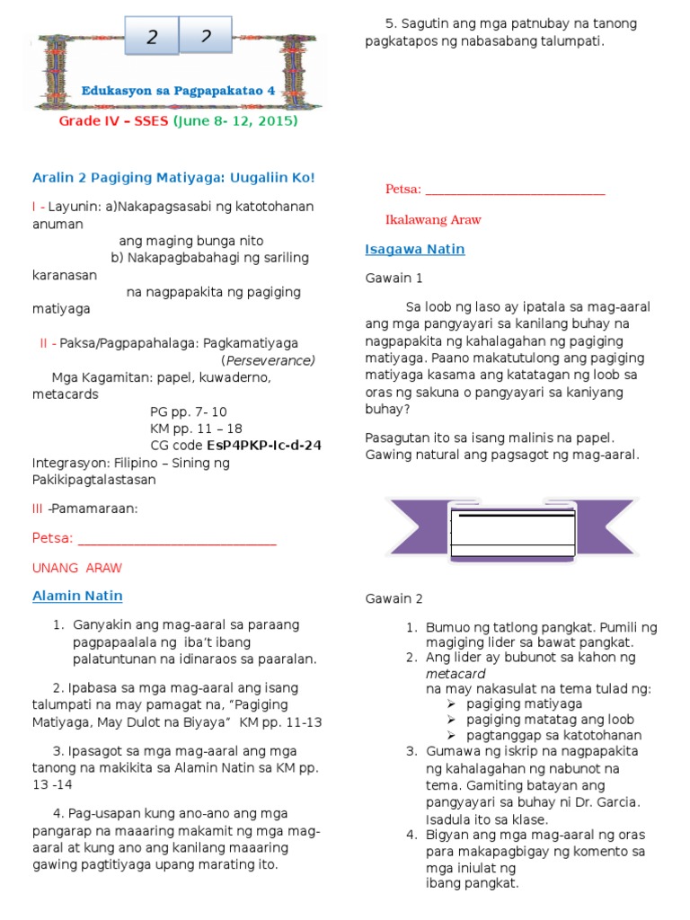 Aralin 2 Pagiging Matiyaga Uugaliin Ko
