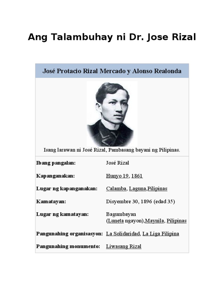 Ang Talambuhay Ni Dr Jose Rizal