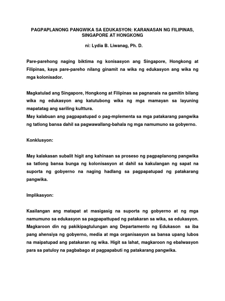 Pagplaplanong Pangwika Gawain 1 Sample