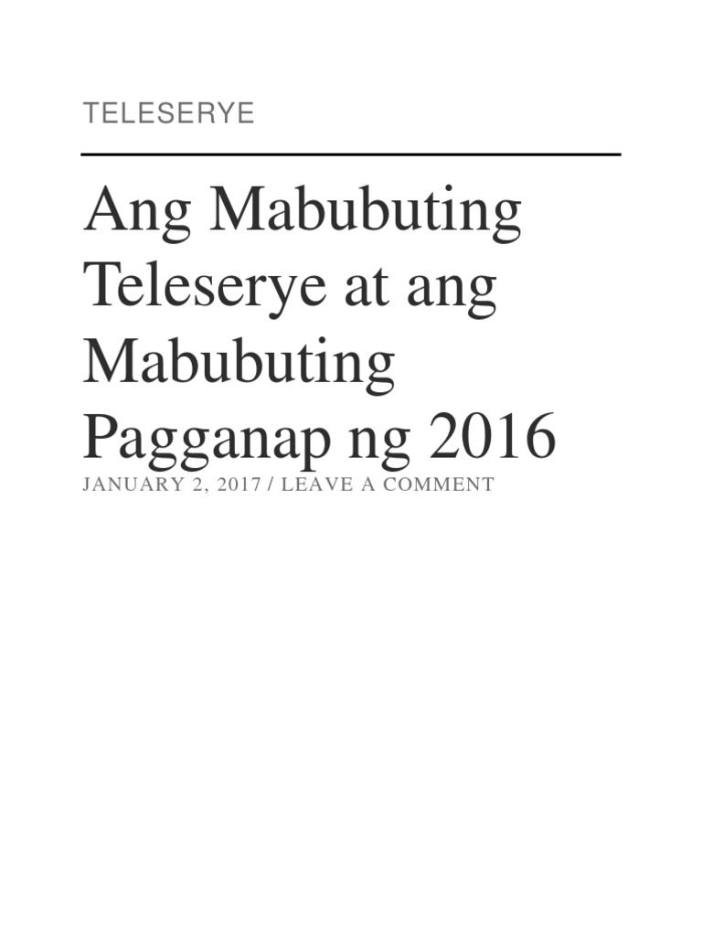 Naka-upo ang bawat tagapanood sa sarili nilang cubicle na pumapaligid sa entablado. 1 PAGSUSURI SA PANONOOD NG TELESERYE KABANATA I ANG SULIRANIN AT SANDIGAN NITO Ayon kay Nicholas Johnson 2000 ang telebisyon ay isa sa mga pinakamakapangyarihang pwersa ng tao na kailanman ay hindi pinakawalan sa kanyang sarili. Ang password ay e-mail sa iyo.