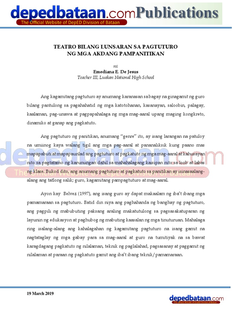 Teatro Bilang Lunsaran Sa Pagtuturo